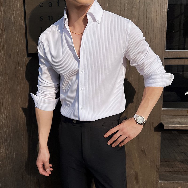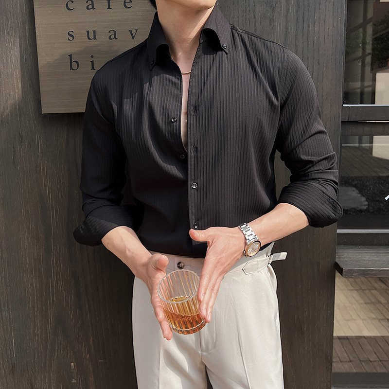 Men’s Dark Stripes V-neck Long Sleeve Shirt