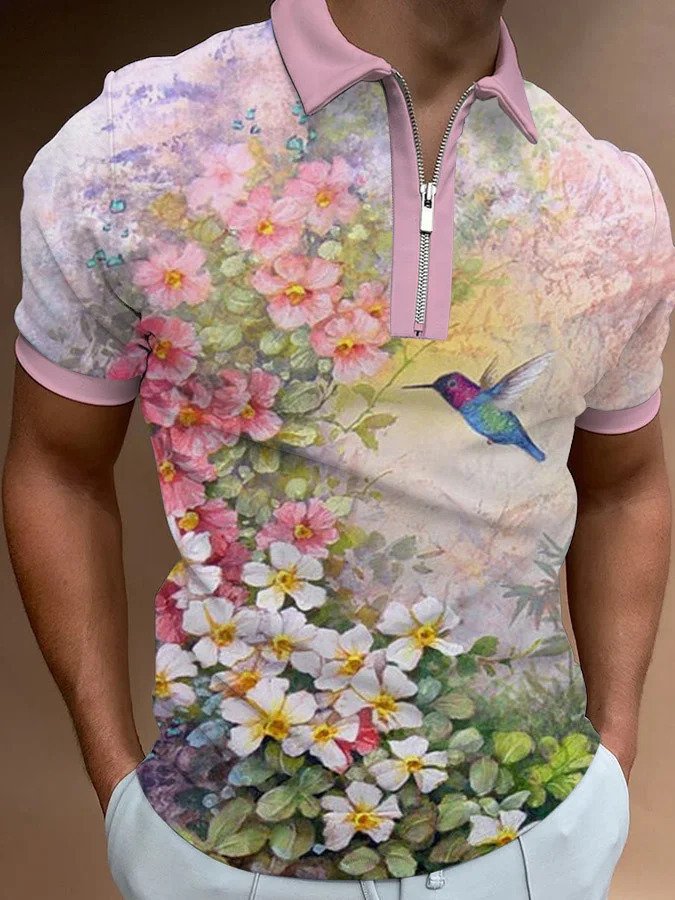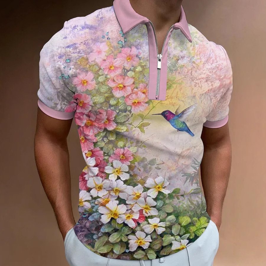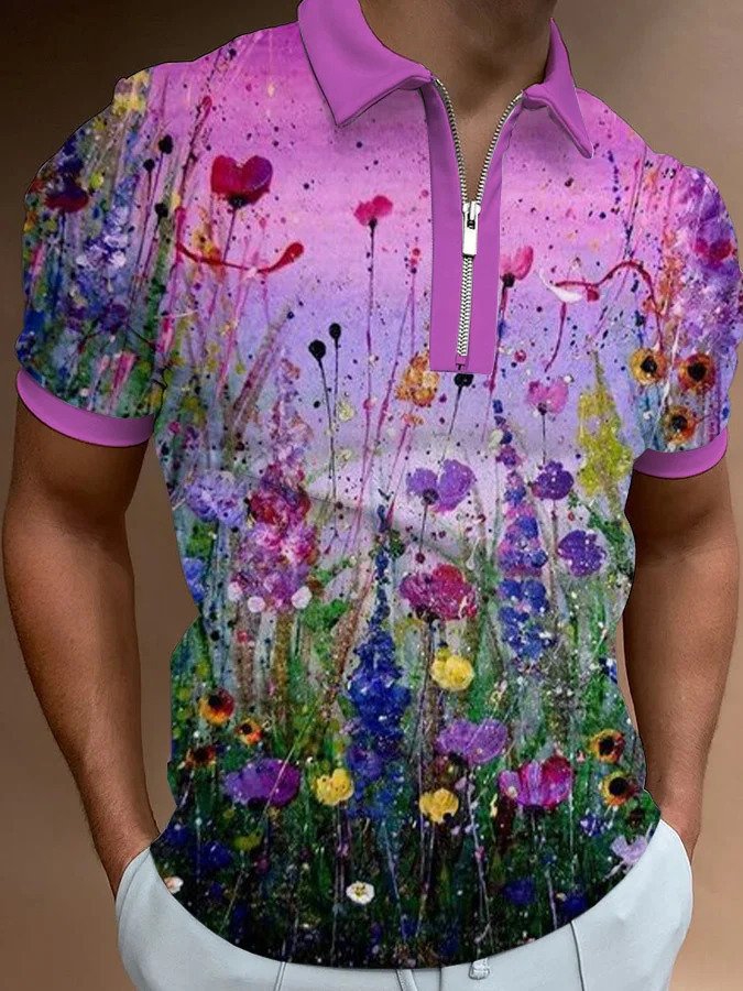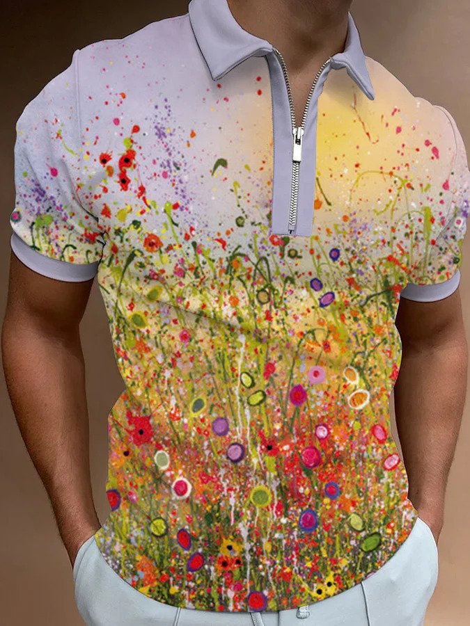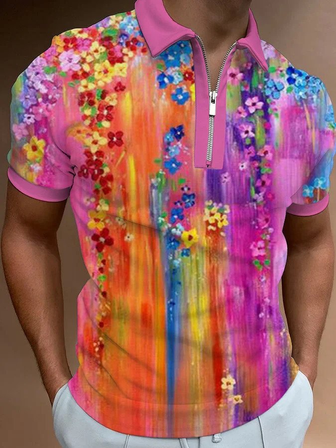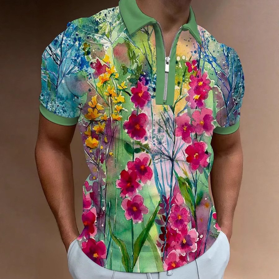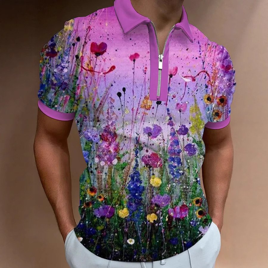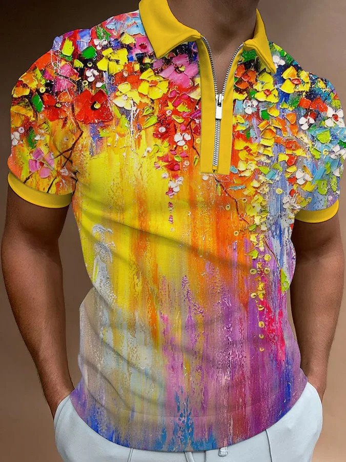 Men’s European And American 3D Printing Fashion Simple Zipper Short Sleeve